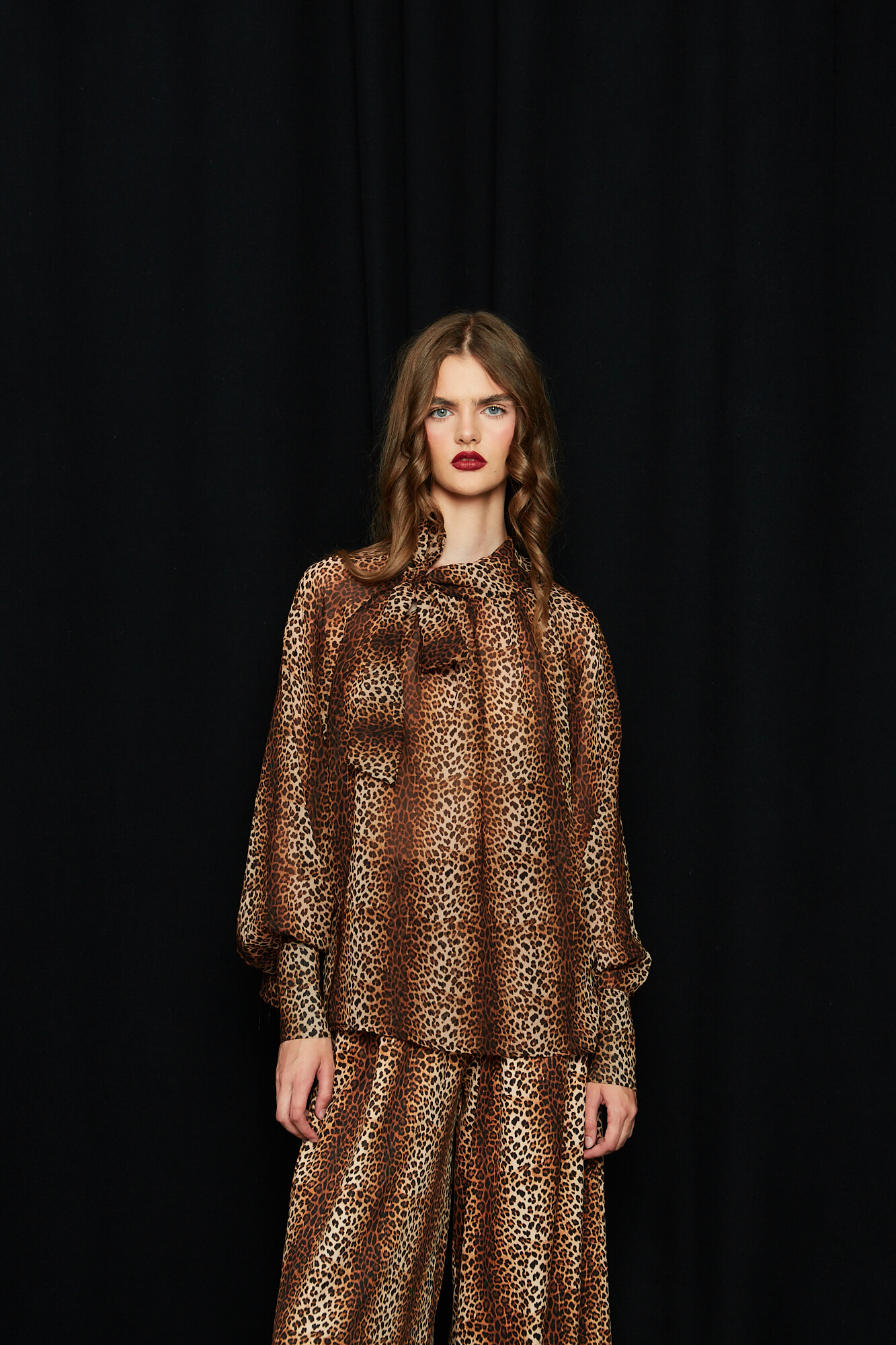 - Ψηλή μανσέτα που κλείνει με ντυμένα κουμπιά