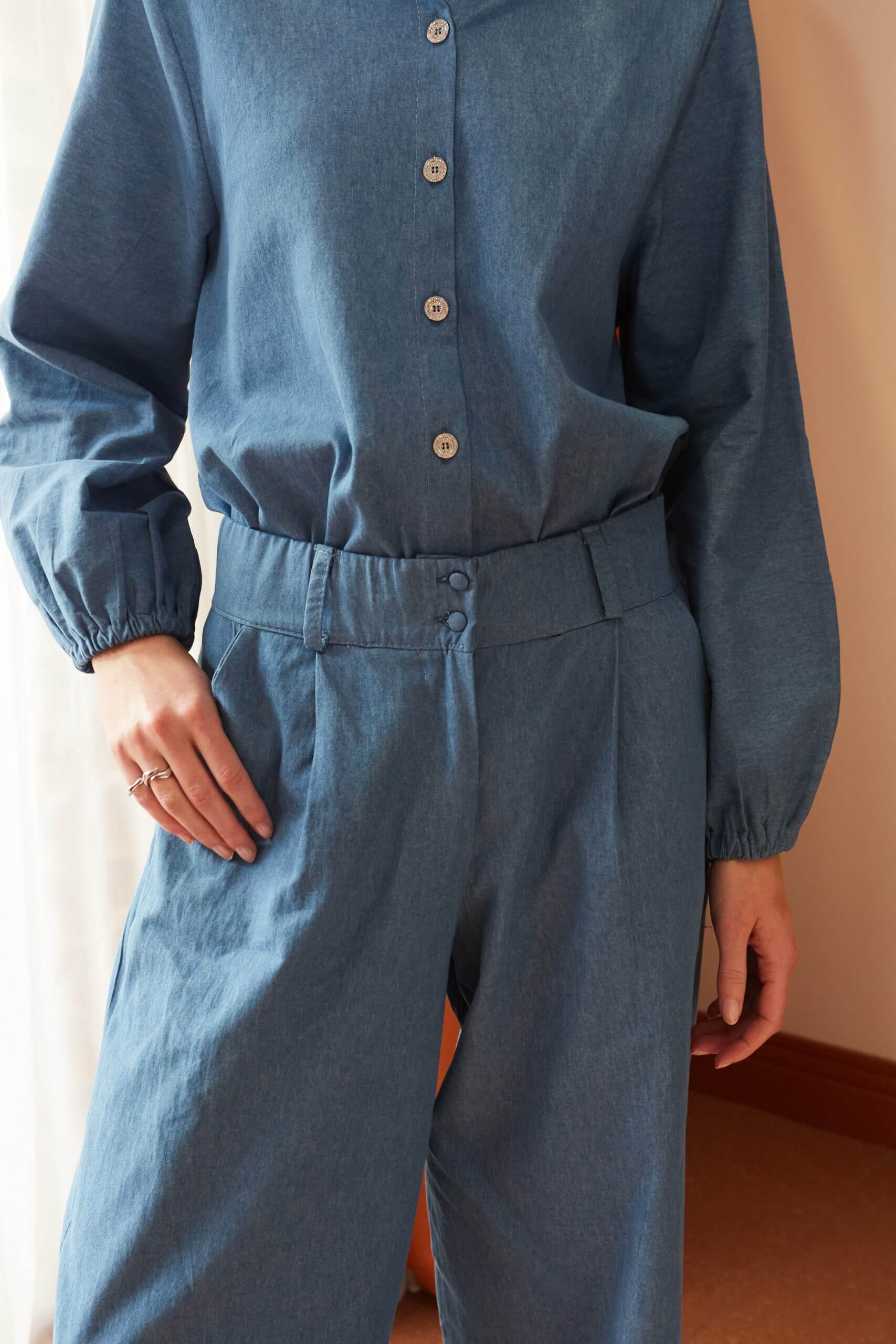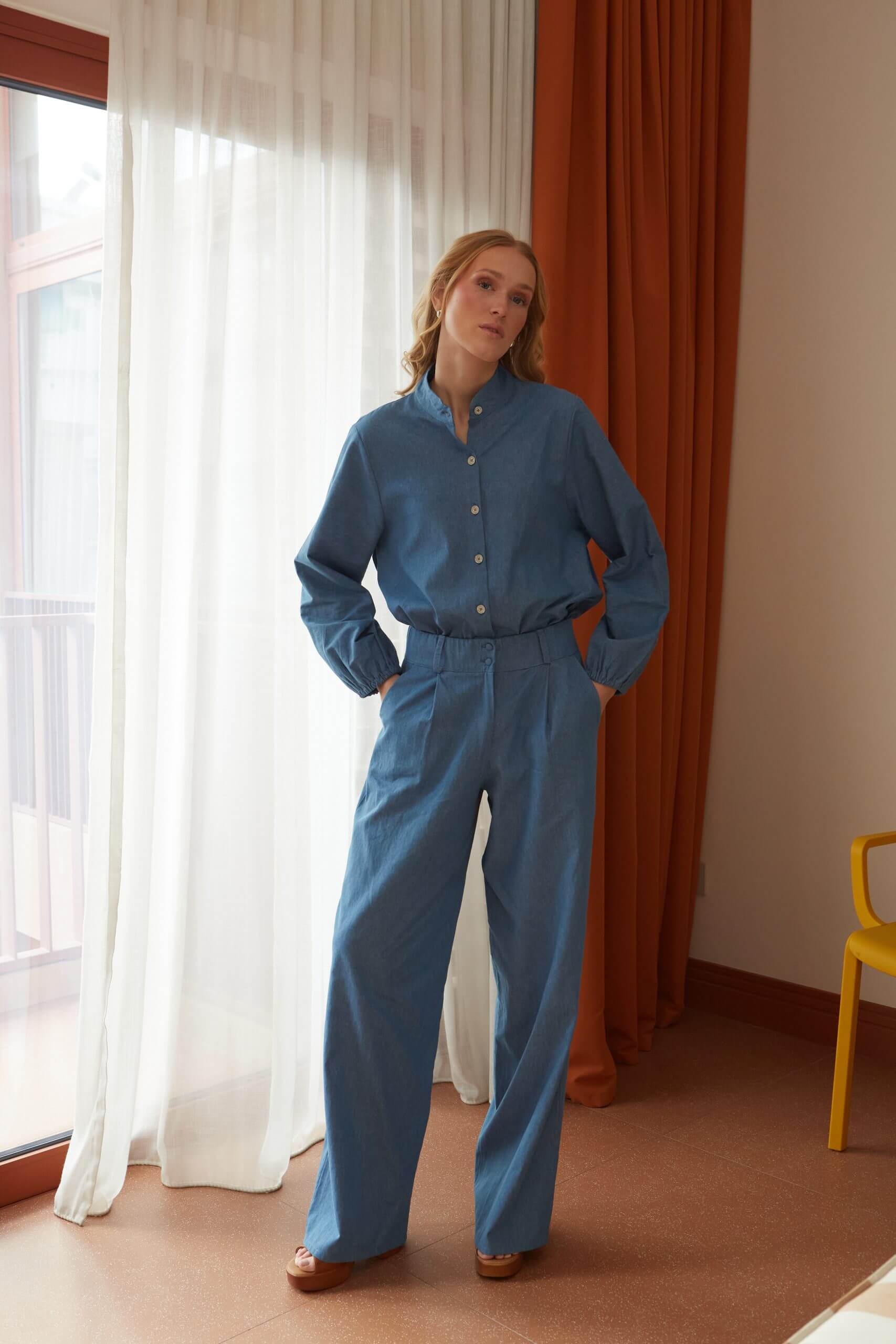 - Κλείνει με ντυμένα κουμπιά και φερμουάρ